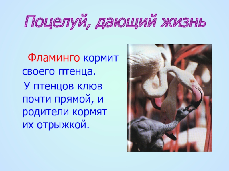 У птенцов клюв почти прямой, и родители кормят их отрыжкой.