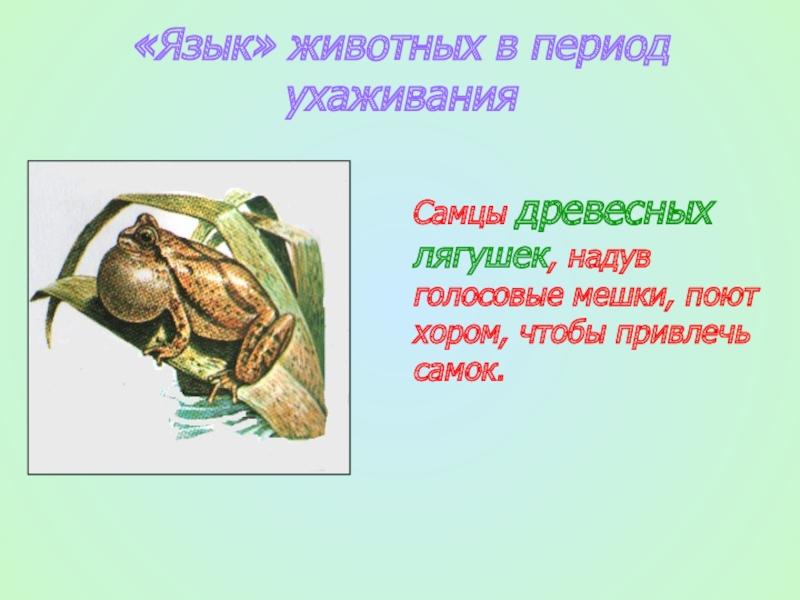 надув голосовые мешки, поют хором, чтобы привлечь самок.