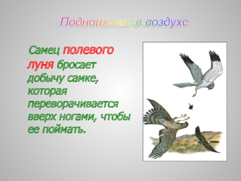 Самец полевого луня бросает добычу самке, которая переворачивается вверх