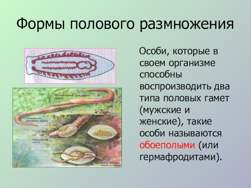 два типа половых гамет(мужские и женские), такие особи называются обоеполыми (или гермафродитами).