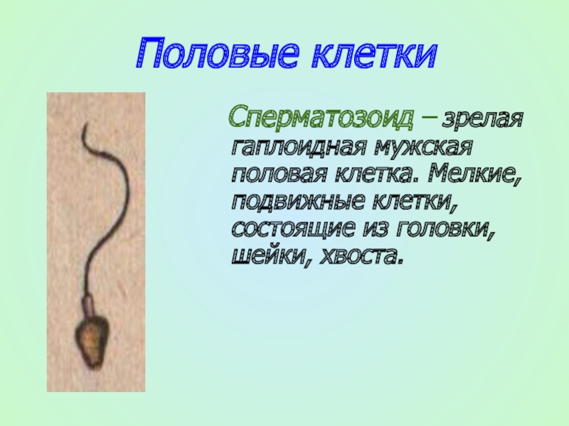 Сперматозоид – зрелая гаплоидная мужская половая клетка. Мелкие, подвижные