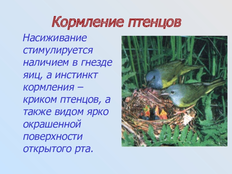 Насиживание стимулируется наличием в гнезде яиц, а инстинкт