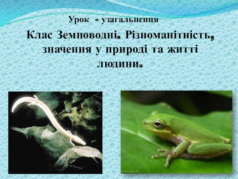 Клас Земноводні. Різноманітність, значення у природі та житті людини.