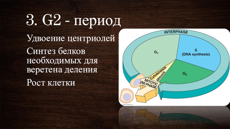 3. G2 - периодУдвоение центриолейСинтез белков необходимых для веретена деленияРост клетки