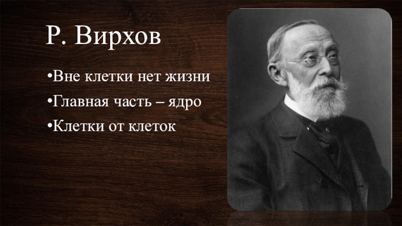 Р. ВирховВне клетки нет жизниГлавная часть – ядроКлетки от клеток