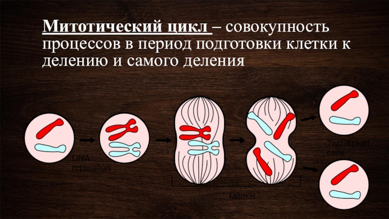 Слайд 3Митотический цикл – совокупность процессов в период подготовки клетки к делению