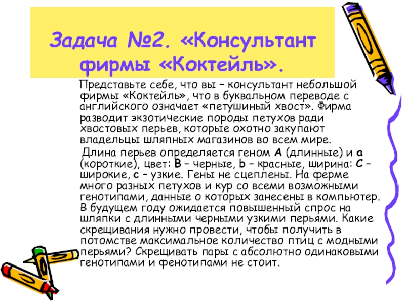 Слайд 4Задача №2. «Консультант фирмы «Коктейль».