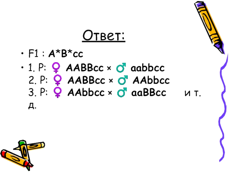 3. Р: ♀ ААbbсс × ♂ aaВВсс и т.д.