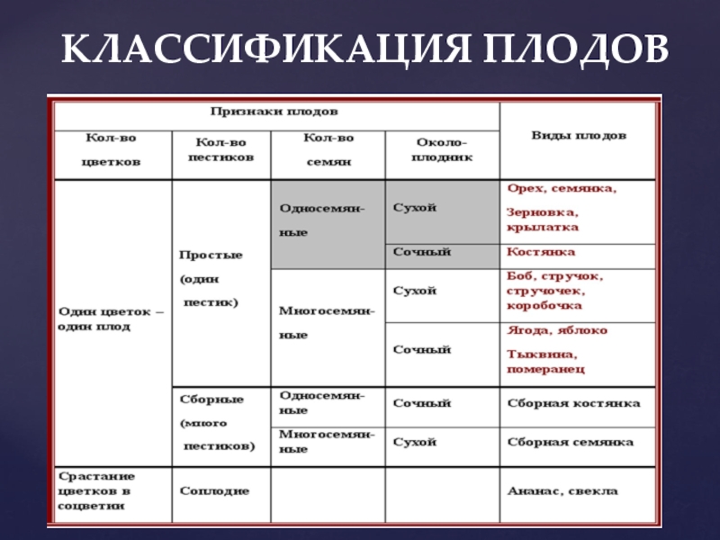 КЛАССИФИКАЦИЯ ПЛОДОВ