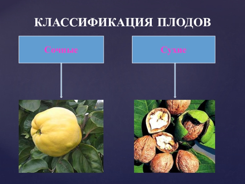 КЛАССИФИКАЦИЯ ПЛОДОВСочныеСухие