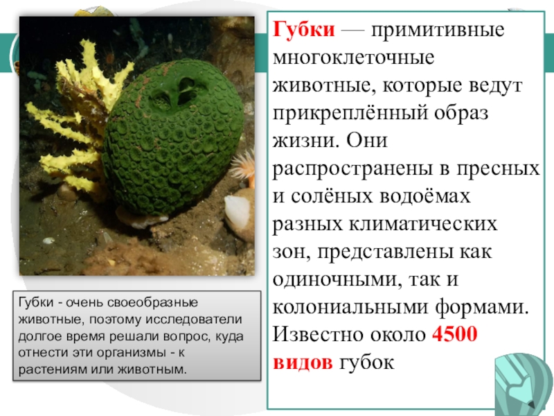 Губки - очень своеобразные животные, поэтому исследователи долгое время решали вопрос, куда отнести эти организмы - к растениям или животным.