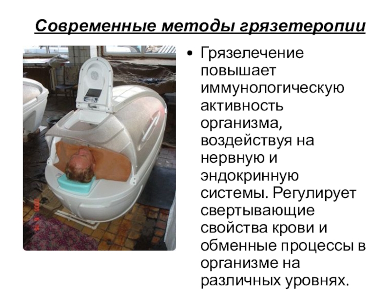 Слайд 15Современные методы грязетеропии