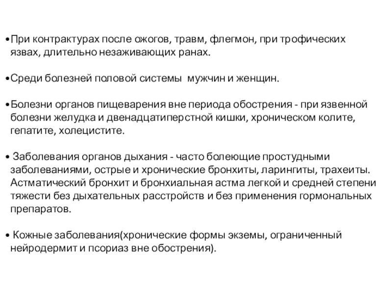 Кожные заболевания(хронические формы экземы, ограниченный нейродермит и псориаз вне обострения).