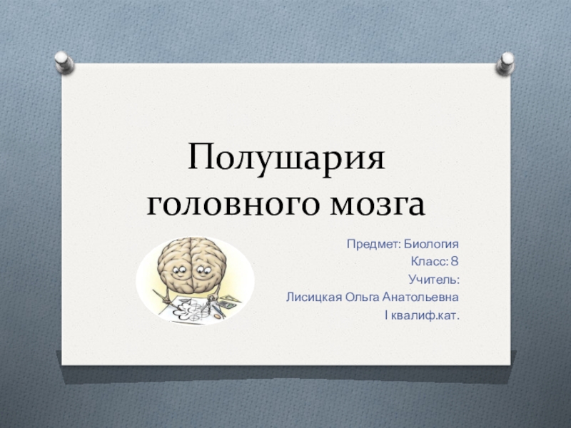 Полушария головного мозгаПредмет: БиологияКласс: 8Учитель:Лисицкая Ольга АнатольевнаI квалиф.кат.