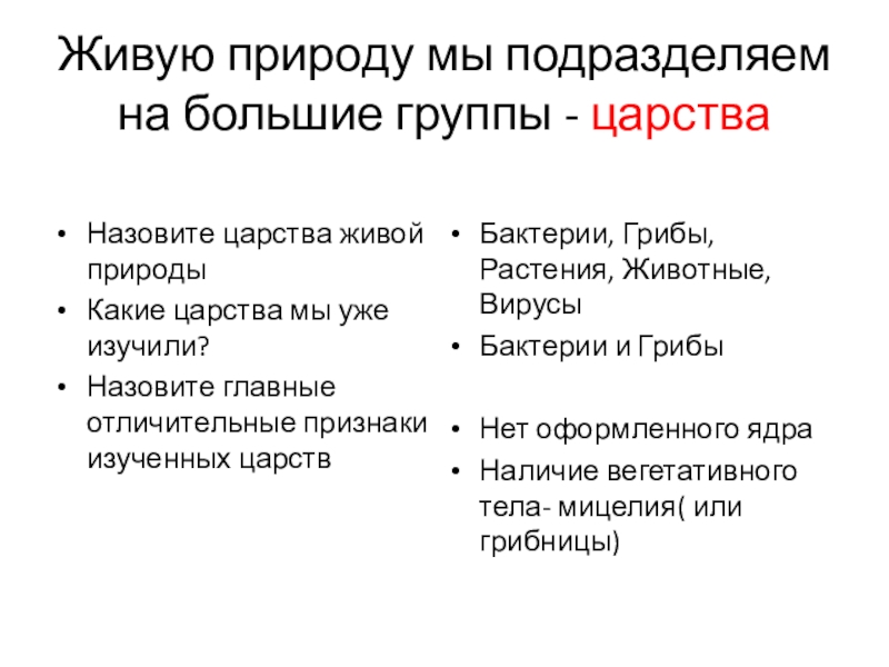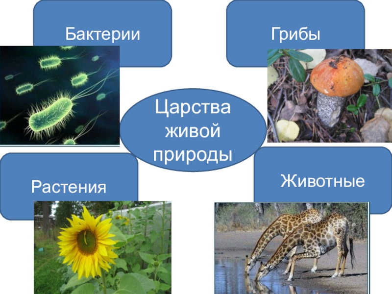 Бактерии, Грибы, Растения, Животные, Вирусы