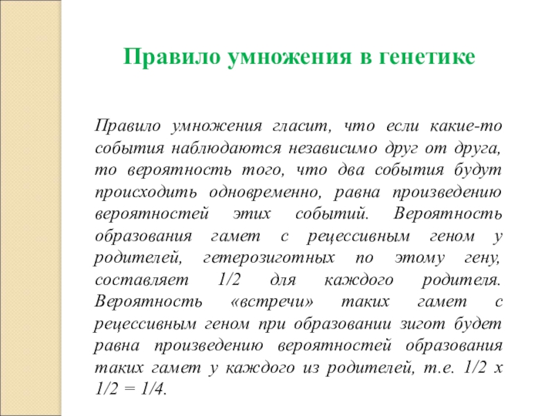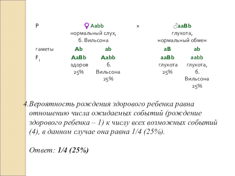 Вероятность появления особей с тем или иным генотипом можно определить по формуле: