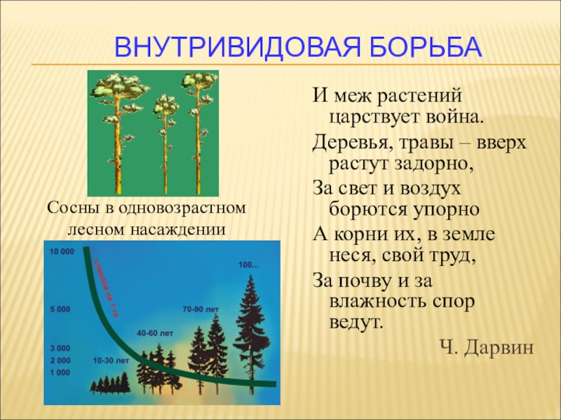 Сосны в одновозрастном лесном насаждении