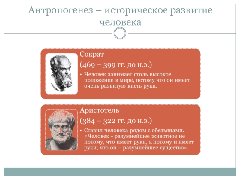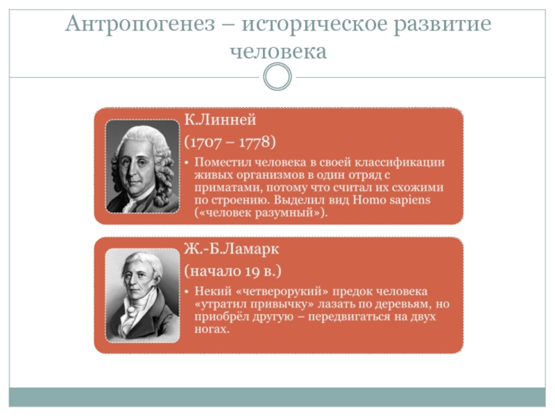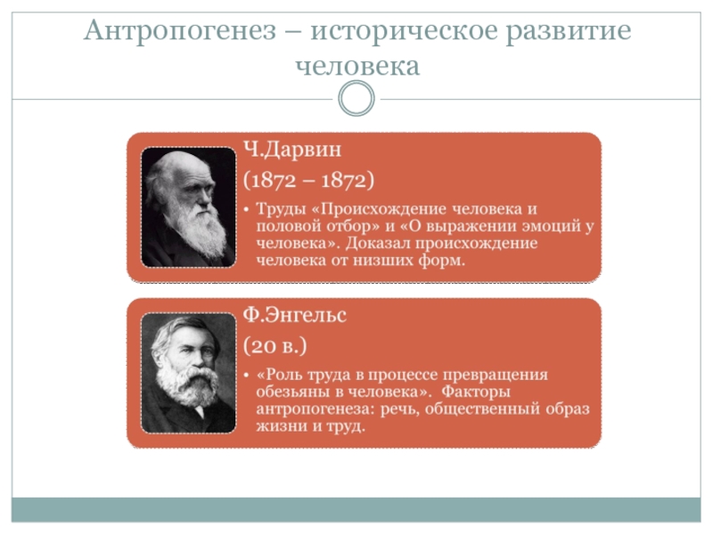 теория предполагает, что человек произошел от высших приматов — человекоподобных существ путем постепенного видоизменения под влиянием внешних факторов и естественного отбора