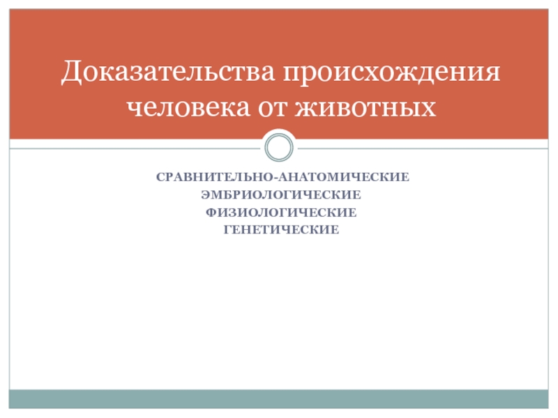 СРАВНИТЕЛЬНО-АНАТОМИЧЕСКИЕЭМБРИОЛОГИЧЕСКИЕФИЗИОЛОГИЧЕСКИЕГЕНЕТИЧЕСКИЕДоказательства происхождения человека от животных
