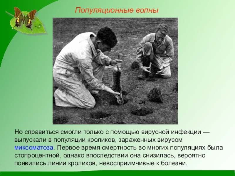 в популяции кроликов, зараженных вирусом миксоматоза. Первое время смертность во многих популяциях была стопроцентной, однако впоследствии она снизилась, вероятно появились линии кроликов, невосприимчивые к болезни.