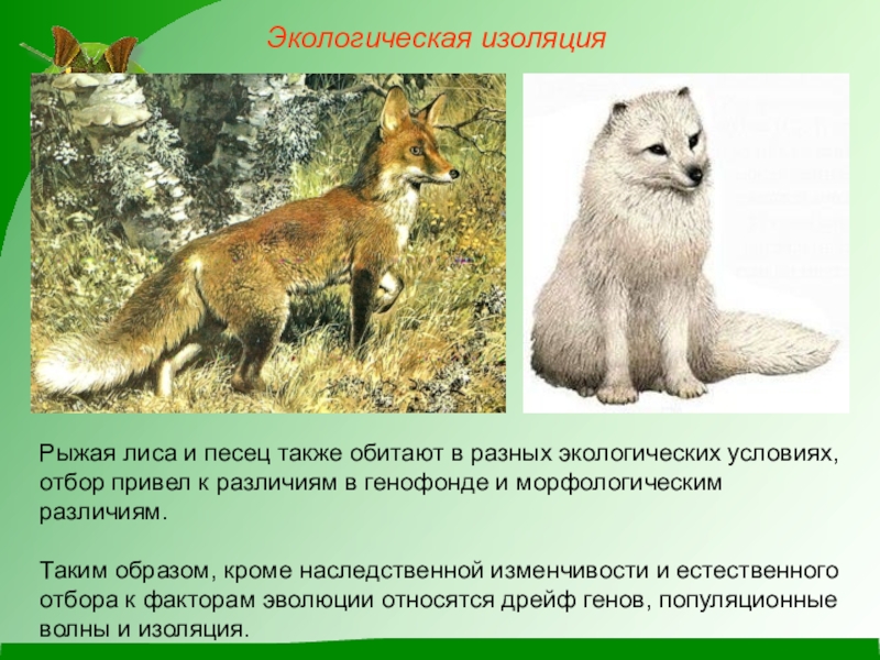 Рыжая лиса и песец также обитают в разных экологических условиях,