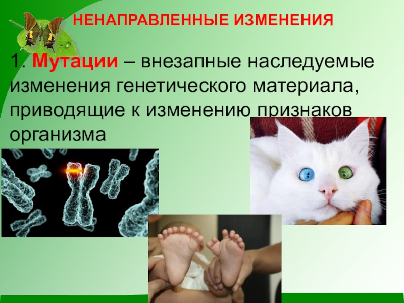 1. Мутации – внезапные наследуемые изменения генетического материала, приводящие к