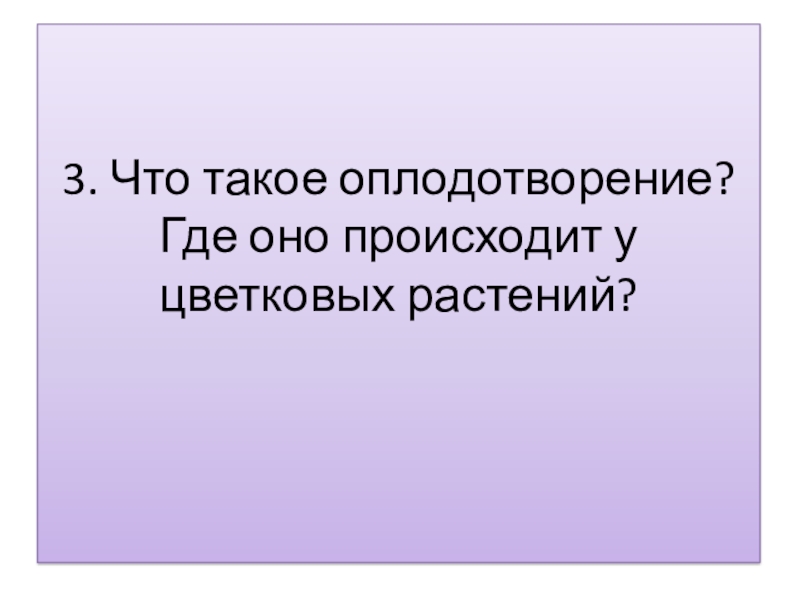 3. Что такое оплодотворение?  Где оно происходит у цветковых растений?