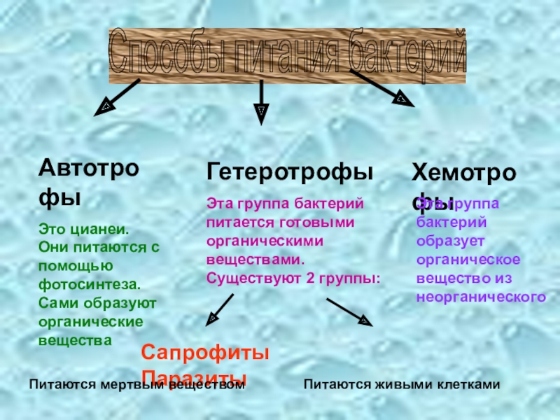 Эта группа бактерий питается готовыми органическими веществами. Существуют 2 группы: