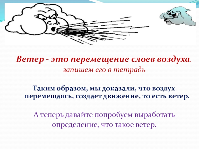 образом, мы доказали, что воздух перемещаясь, создает движение, то есть ветер.