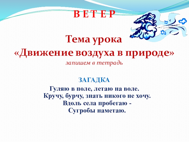 Слайд 8ВЕТЕР – ДВИЖЕНИЕ ВОЗДУХА В ПРИРОДЕ