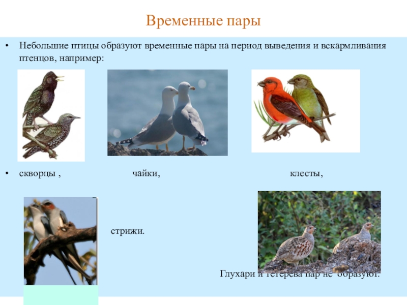 Небольшие птицы образуют временные пары на период выведения и вскармливания