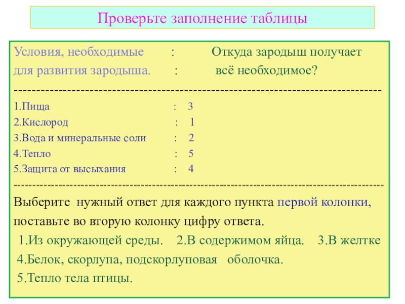 1.Из окружающей среды. 2.В содержимом яйца. 3.В желтке