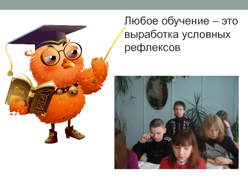 Условные рефлексы: пробуждение на звук будильника; бег кота на кухню при звуке открывающегося холодильника.