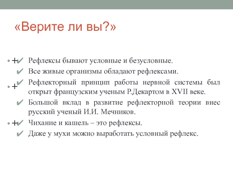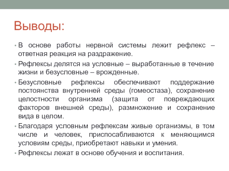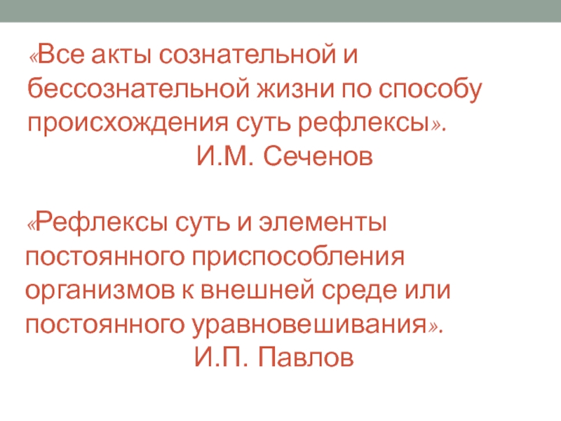 «Рефлексы суть и элементы постоянного приспособления организмов к внешней среде или постоянного уравновешивания».
