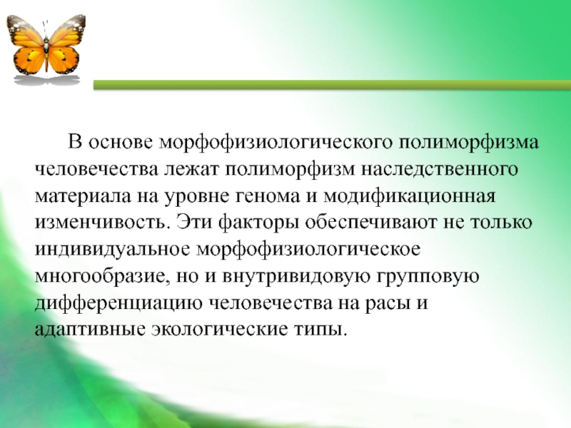 Слайд 18 В основе морфофизиологического полиморфизма человечества лежат полиморфизм наследственного