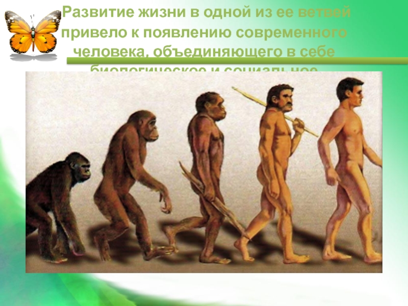 Слайд 5 Развитие жизни в одной из ее ветвей привело к появлению