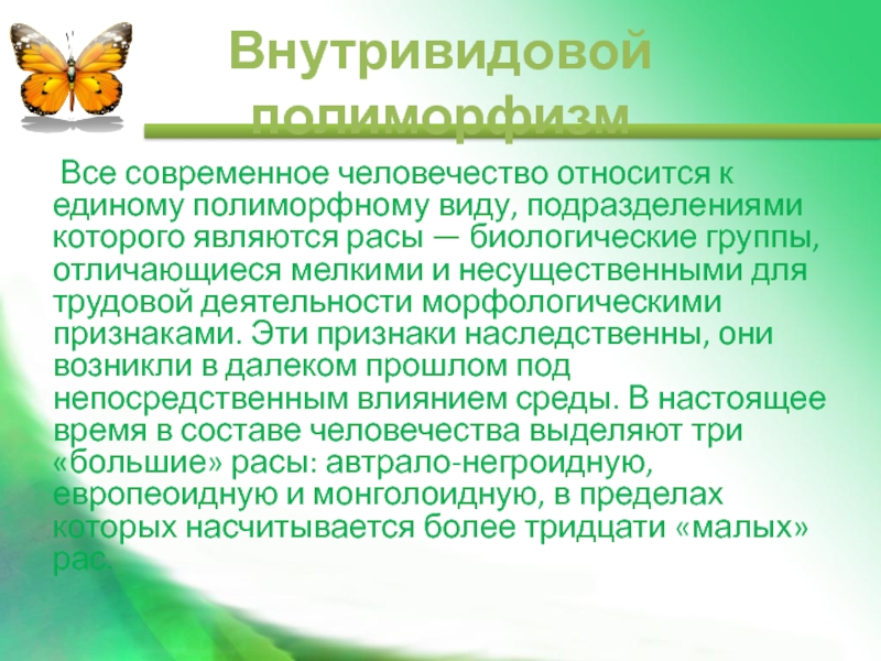Слайд 13Внутривидовой полиморфизм