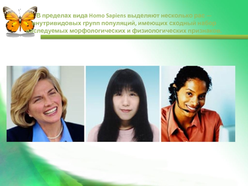 Слайд 14В пределах вида Homo Sapiens выделяют несколько рас — внутривидовых групп