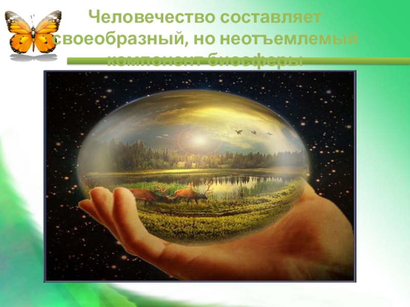 Слайд 3Человечество составляет своеобразный, но неотъемлемый компонент биосферы
