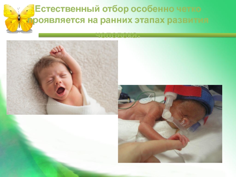Слайд 12Естественный отбор особенно четко проявляется на ранних этапах развития человека.