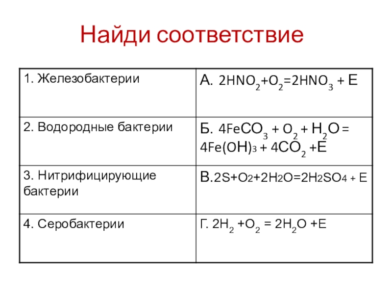 Б) железобактерии 2) хемосинтез