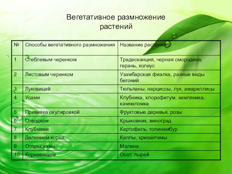 Презентация, доклад к уроку биологии Вегетативное размножение растений (6 класс)