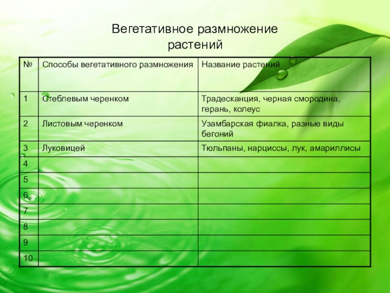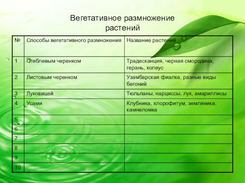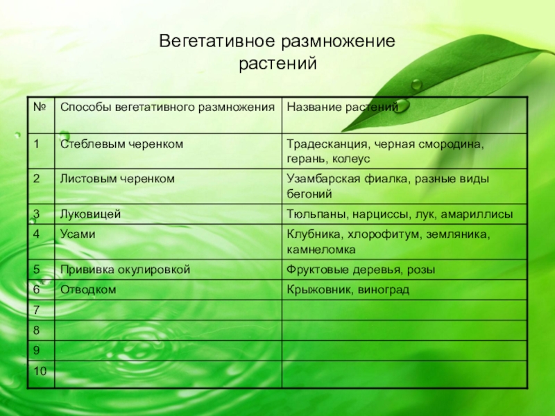 Изучить основные способы вегетативного размножения цветковых растений, их особенности, биологическое значение.