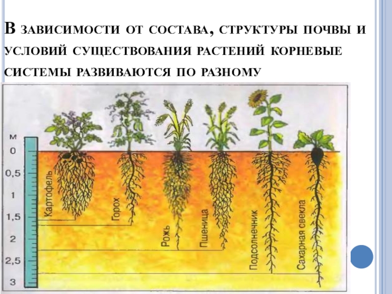 Слайд 2В зависимости от состава, структуры почвы и условий существования растений корневые