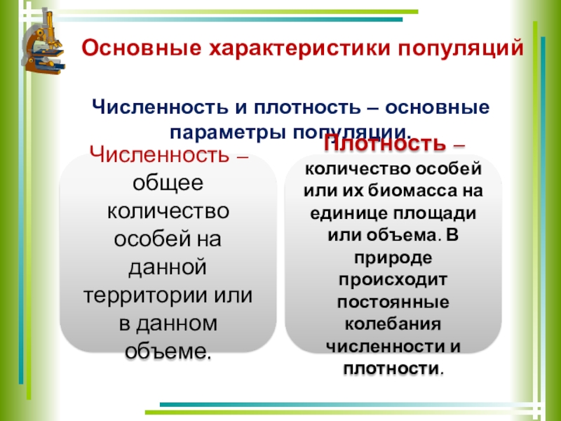 Слайд 10Основные характеристики популяций