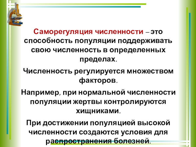 Слайд 15Саморегуляция численности – это способность популяции поддерживать свою численность в определенных