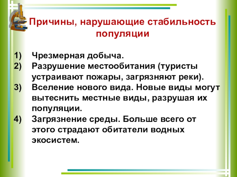 Причины, нарушающие стабильность популяции