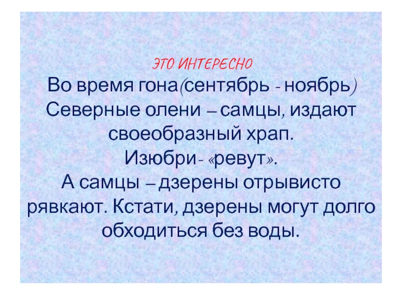 Во время гона(сентябрь - ноябрь) Северные олени – самцы, издают