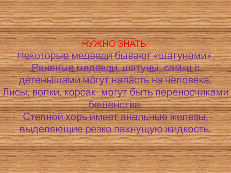 Лисы, волки, корсак- могут быть переносчиками бешенства.