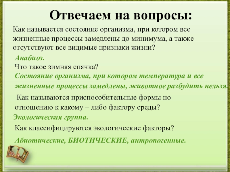 Абиотические, БИОТИЧЕСКИЕ, антропогенные.